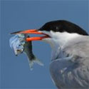 On many protected barrier beaches you may find Least Terns feeding and raising their new chicks alongside Piping Plovers. Their nests usually consist of a shallow scrape on a sandy beach. Least Terns are the smallest terns and have gray upperparts, white underparts, a black cap and nape, a white forehead, and an orange-yellow bill with a dark tip......read