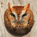 backyard nesting box in West Falmouth. This adult owl is a striking